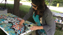 Description de l’activité: Les dessus de tables auront été préalablement nettoyés et apprêtés par une équipe de la ville de Beauharnois. Le public sera accompagné par les 4 artistes du projet : Marie-Ange Brassard, Line Desrochers, Sonia Laurin, Louise Page. Les participants pourront utiliser les pochoirs mis à leur disposition. La superposition des différents motifs ainsi peints créeront la texture du thème exploité. Les branches auront été préalablement nettoyées et prêtes à peindre. La préparation de la médiation sera assurée par Line Desrochers.
